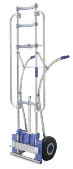 Original Expresso Aluminium-Doppelstapelkarre ca. 1700 mm Gesamthöhe, Breite 485 mm, Luftbereifung 260 mm Ø mit Rillenprofil verstärkt, Höhenverstellbares Pendel, ohne Rutschkufen, ohne Schaufel He...