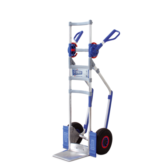 Stapelkarre mit höhenverstellbaren-Sicherheitshandgriffe, Schaufel Standard LxB 245x220mm, Schaufel feststehend, Luftbereifung Ø 260mm, Räder Kugelgelagert, Gesamthöhe wahlweise 1300mm - 1400 mm oder 1500 mm Tragkraft 300 KG, Rutschkufen aus Exlan, Achsbreite 440 mm