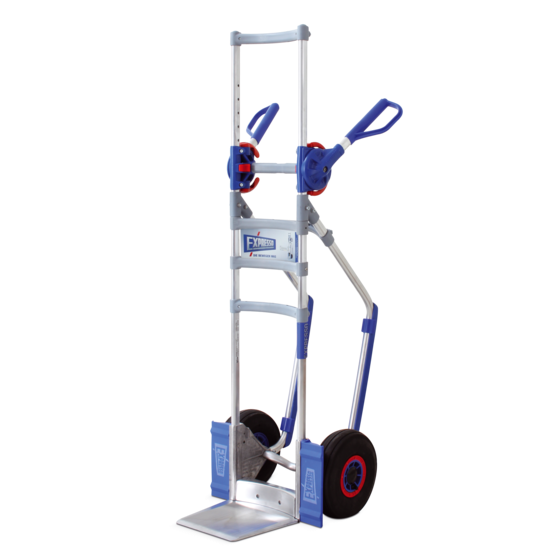 Stapelkarre mit höhenverstellbaren-Sicherheitshandgriffe, Schaufel Standard LxB 245x220mm, Schaufel feststehend, Luftbereifung Ø 260mm, Räder Kugelgelagert, Gesamthöhe 1500mm, Tragkraft 300 KG, Rutschkufen aus Exlan, Achsbreite 440 mm