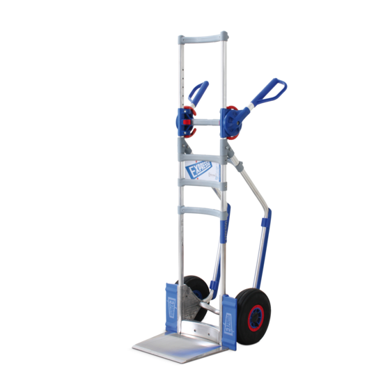 Stapelkarre mit höhenverstellbaren-Sicherheitshandgriffe, Schaufel Standard LxB 245x220mm, Schaufel feststehend, Luftbereifung Ø 260mm, Räder Kugelgelagert, Gesamthöhe 1400mm, Tragkraft 300 KG, Rutschkufen aus Exlan, Achsbreite 440 mm